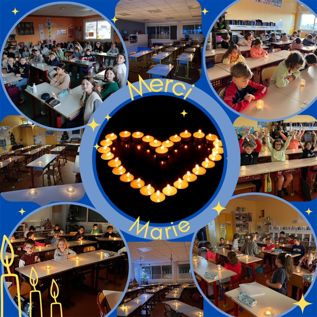 Ce lundi 8 décembre, jour de l’Immaculée Conception, l’école était illuminée par les élèves et les enseignants apportant à tous, la lumière, symbole d’espérance.