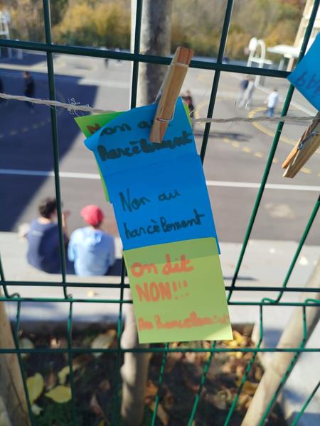 - Enfin, plusieurs élèves ont écrit des messages d’espoir et de positivité sur un mur de mots pour affirmer haut et fort : Non au harcèlement !