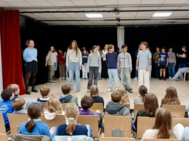 - Les 5e D ont présenté durant leur cour d’EMC des petites scènes de théâtre pour sensibiliser des classe de 6e au harcèlement et montrer comment agir en tant que témoins.